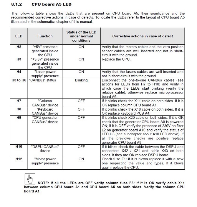 4. With the machine powered OFF, press all the physical buttons on the master control (there are four buttons - UP, DOWN, LASER, ENTER OR 0). Restart the machine. Check to see if the machine boots up as normal. Try this a few times. Also press the buttons during power on with stuck screen. Report if you see any error code E850 or similar