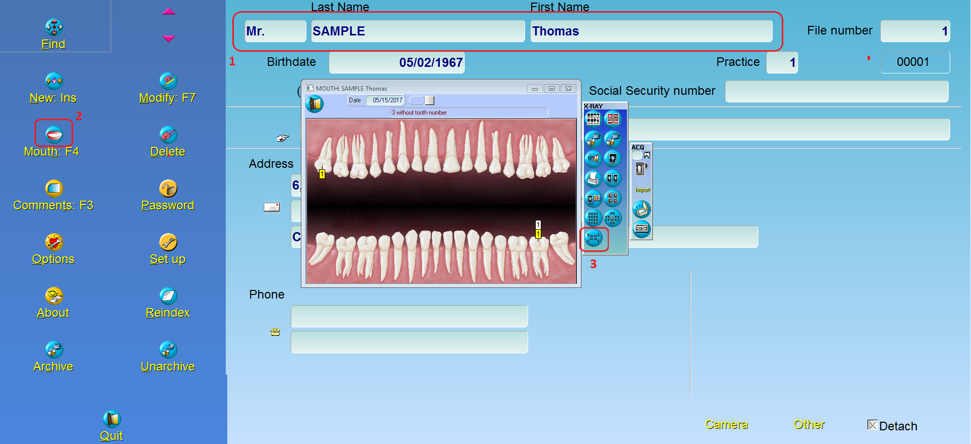 With the above view, you can use the side buttons to change existing template. 8. REORDER button #8 to change order of capture. Follow instructions on the bottom left hand side of the window 9. Use these buttons #9 to change a tile to horizontal or vertical 10. Right click on any tile to open the tooth association window, labeled #10. With this window, we can set tooth numbering, rotation or mirror. This is important to avoid having to go back and change the image orientation. We find it best that right side and upper anterior (those labeled 1-6 and 13, 14, 15) be applied with ROTATION 180 only. Left side and lower anterior (those labeled 7-12 and 16, 17, 18) should have both ROTATION 180 and MIRROR HORIZONTAL UNCHECKED. 11. Check box labeled #11 APPLY ORIENTATION CONTROL 12. Once done, hit Save (disc icon) *NOTE: The sensor toolbar will also have a rotational affect if you double click on the icon. We recommend you leave this feature alone and do not use it in conjunction with the software.